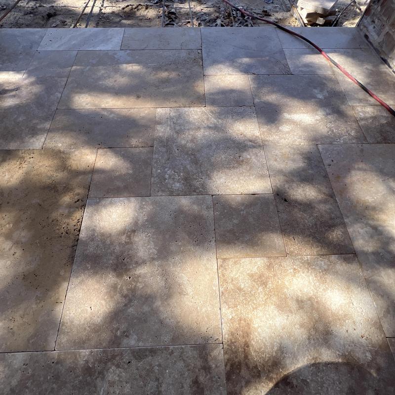 J Caldwell Custom Pools installed Platinum Ice Travertine in Keller, Texas. This project involved placing durable, slip-resistant stone suitable for outdoor spaces. Travertine provides a functional surface for pool decks and patios while handling varying weather conditions effectively. The team ensured proper alignment and spacing to support drainage and long-term use.
