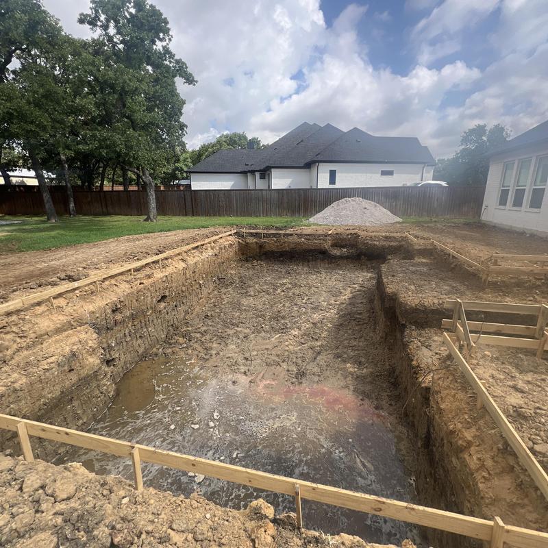 J Caldwell Custom Pools completed a pool excavation in Haslet, Texas. The team dug the site to prepare for pool installation, ensuring proper depth and layout for future construction. This step is essential to establish a stable foundation for residential pool structures.