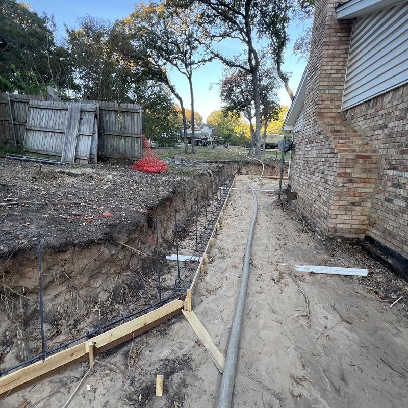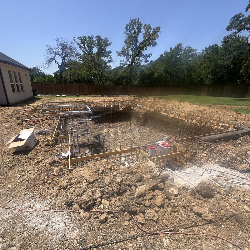 J Caldwell Custom Pools prepared a cabana foundation for concrete pouring in Roanoke, Texas. This step sets the base for a durable cabana structure, ensuring the site is level and ready for the next phase of construction.