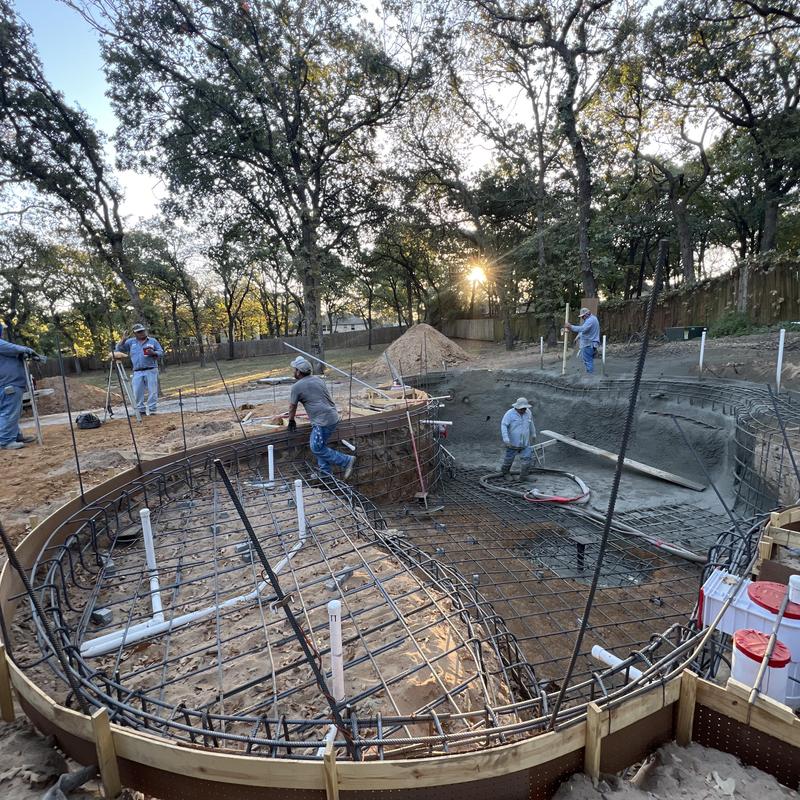 J Caldwell Custom Pools completed steel installation and plumbing work for a pool project in Roanoke, Texas. The team installed structural steel and set up plumbing systems to support pool function and durability.